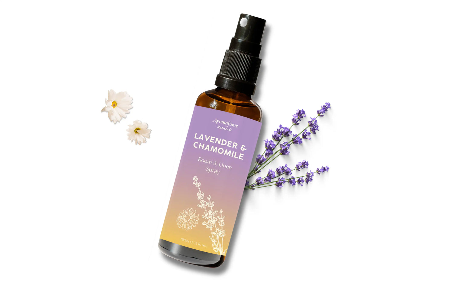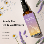 Natural Air Freshener & Aromatherapy Spray | Made with 100% Pure Lavender and Chamomile Essential Oil | Lavandula Angustifolia & Matricaria Chamomilla| Smells like tea & wildflowers at sunset| Induces mood boost & good sleep | Safe to use on fabrics