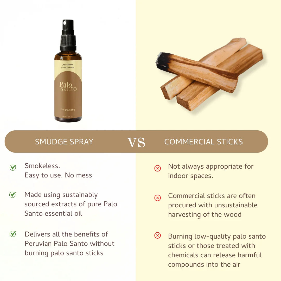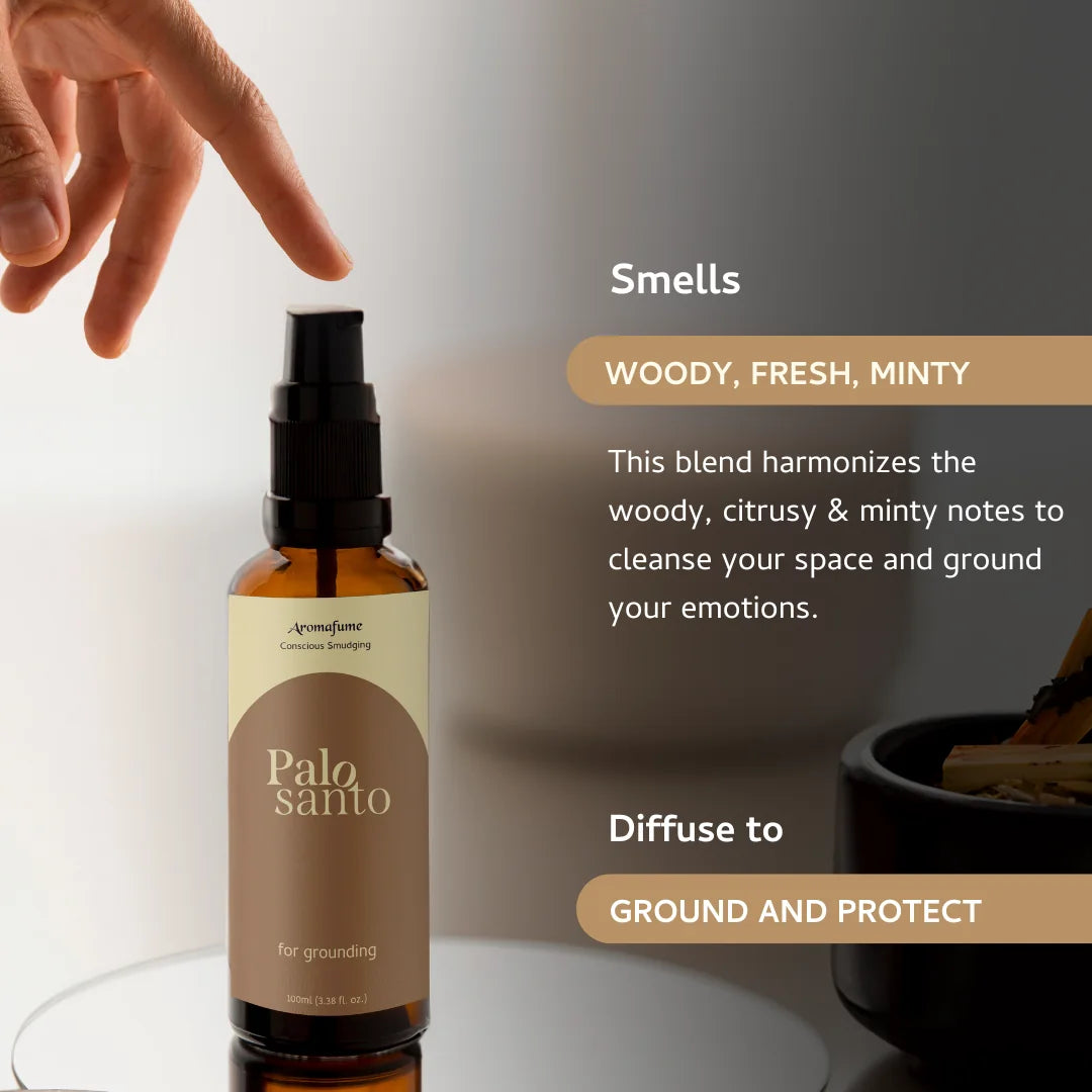 Smokeless Smudging | Natural Home Fragrance & Aromatherapy Spray | Woody & Minty scent to induce confidence & inner peace | Ethically Sourced Palo Santo extracts