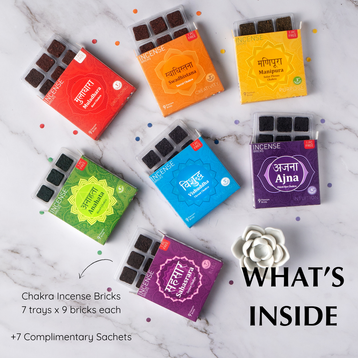 Inspired by ancient Ayurvedic rituals, our Chakra Incense Bricks are designed to harmonize your seven chakras and restore energetic balance.