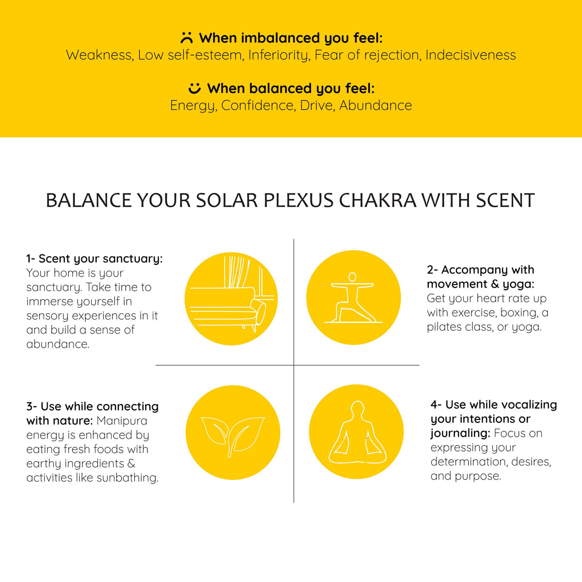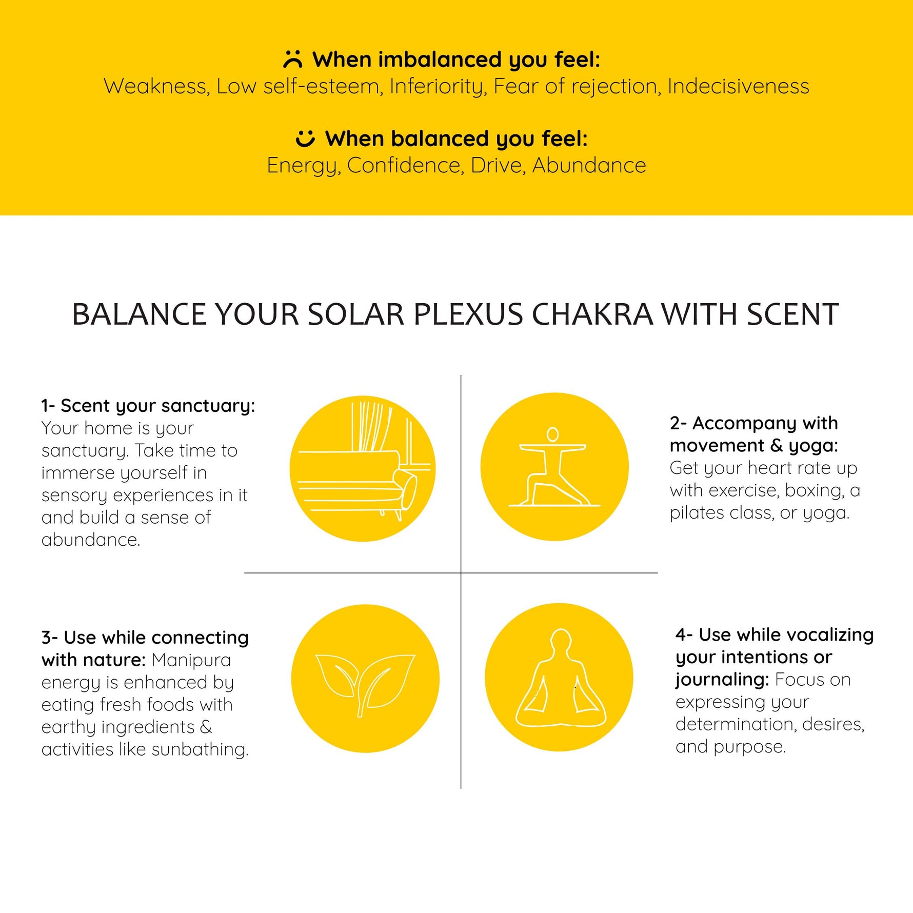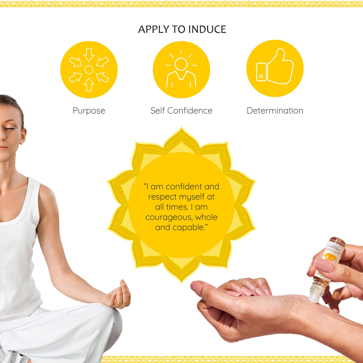 The Solar Plexus Chakra (Manipura) Roll-on, expertly crafted by a Chakra Alignment Herb Master, offer a well-balanced fragrance derived from pure aromatic extracts. The Manipura Chakra, located at the navel, is associated with personal power, fears, and anxiety. Inhaling the fragrance can help dispel self-doubt, indecisiveness, and a short temper, while promoting self-confidence, a sense of purpose, determination, and a strong gut feeling. It encourages a more confident and purposeful state of being.