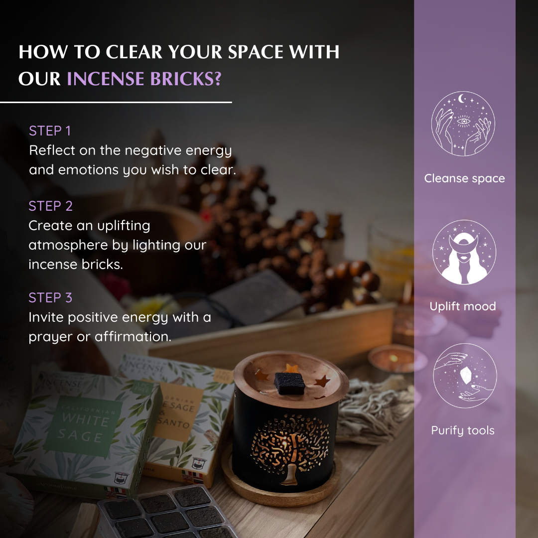 Incense Bricks & Rainbow Burner | Sweet & herbal scent to induce purification | Refresh your home and feel relaxed | Natural Home Fragrance | Ethically Sourced White Sage