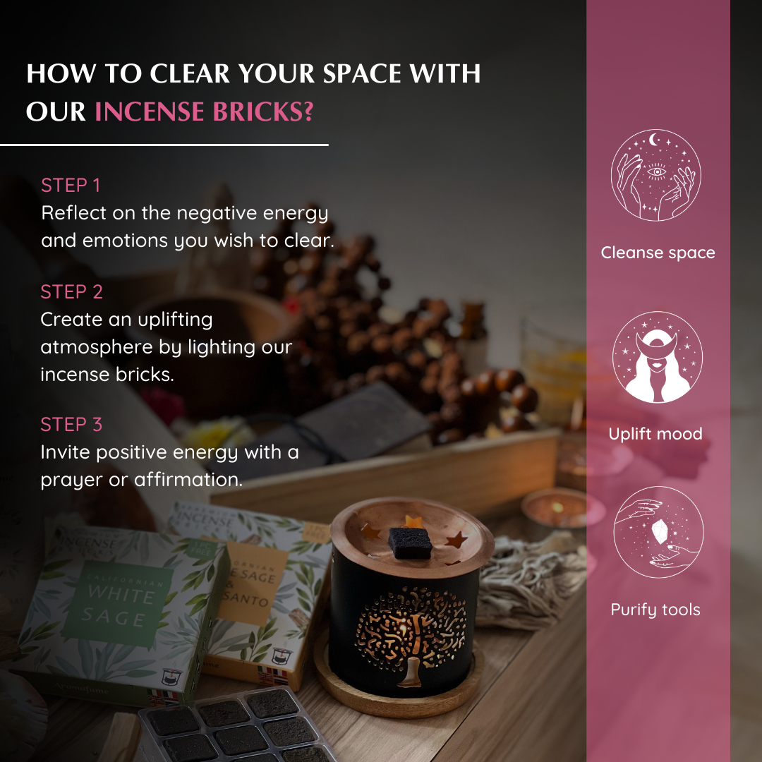 Incense Bricks & Snowflake Burner | Sweet & floral scent to uplift your energy | Refresh your home and feel | Natural Home Fragrance | Ethically Sourced White Sage