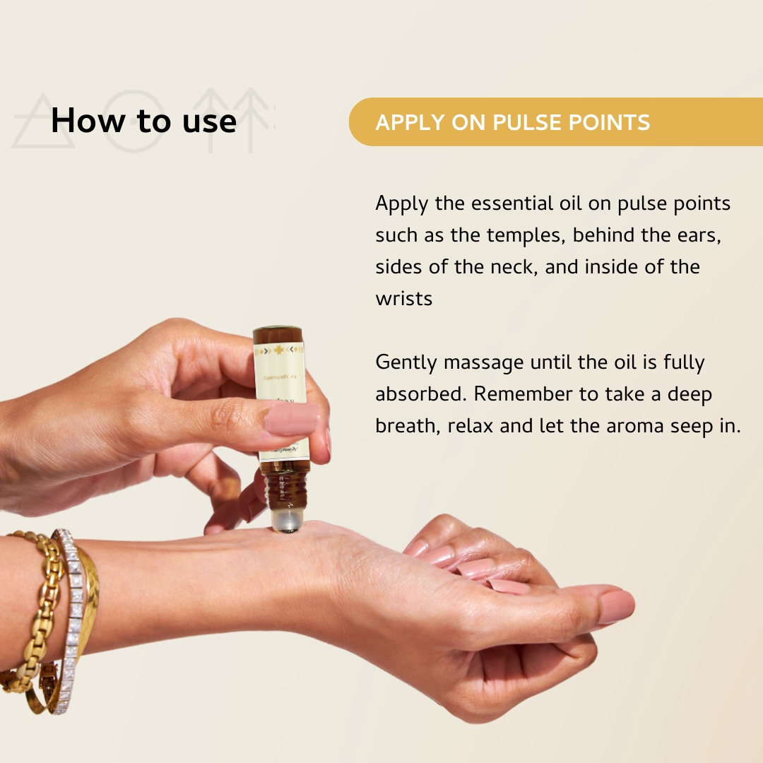Apply to pulse points before meditation, meetings, travel, or sleep — to relax, refocus, and bring harmony back to your day.