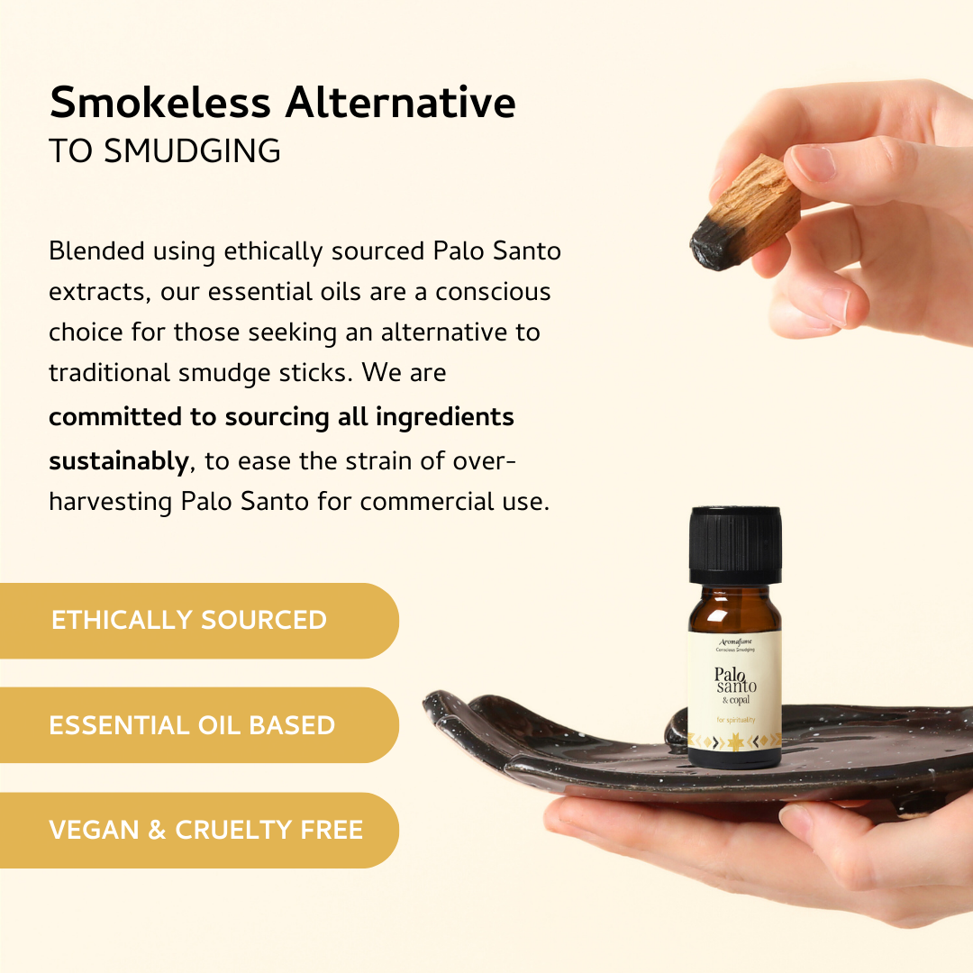 Aromafume's Palo Santo & Copal Essential Oil blend offers a smokeless alternative to smudging. It has been carefully blended to elevate your divine energy and uplift your spirit.