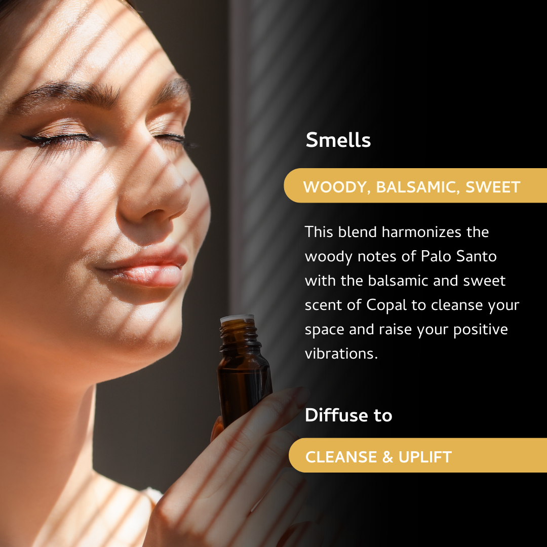 Essential Oil Blend for Upliftment | Woody, Balsamic & Sweet scent |Natural home fragrance & air freshener |Made with Ethically sourced Palo Santo | Refresh your home and clear energy
