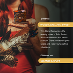 Known as “holy wood” in Spanish, Palo Santo is a tree associated with several medicinal and therapeutic properties - specifically known to induce positivity, grounding and protection. Copal adds a warm, resinous depth that enhances focus and meditation. Together, they create a soothing and sacred atmosphere that is particularly effective in purifying your spirit and encouraging a reflective and centred mindset.