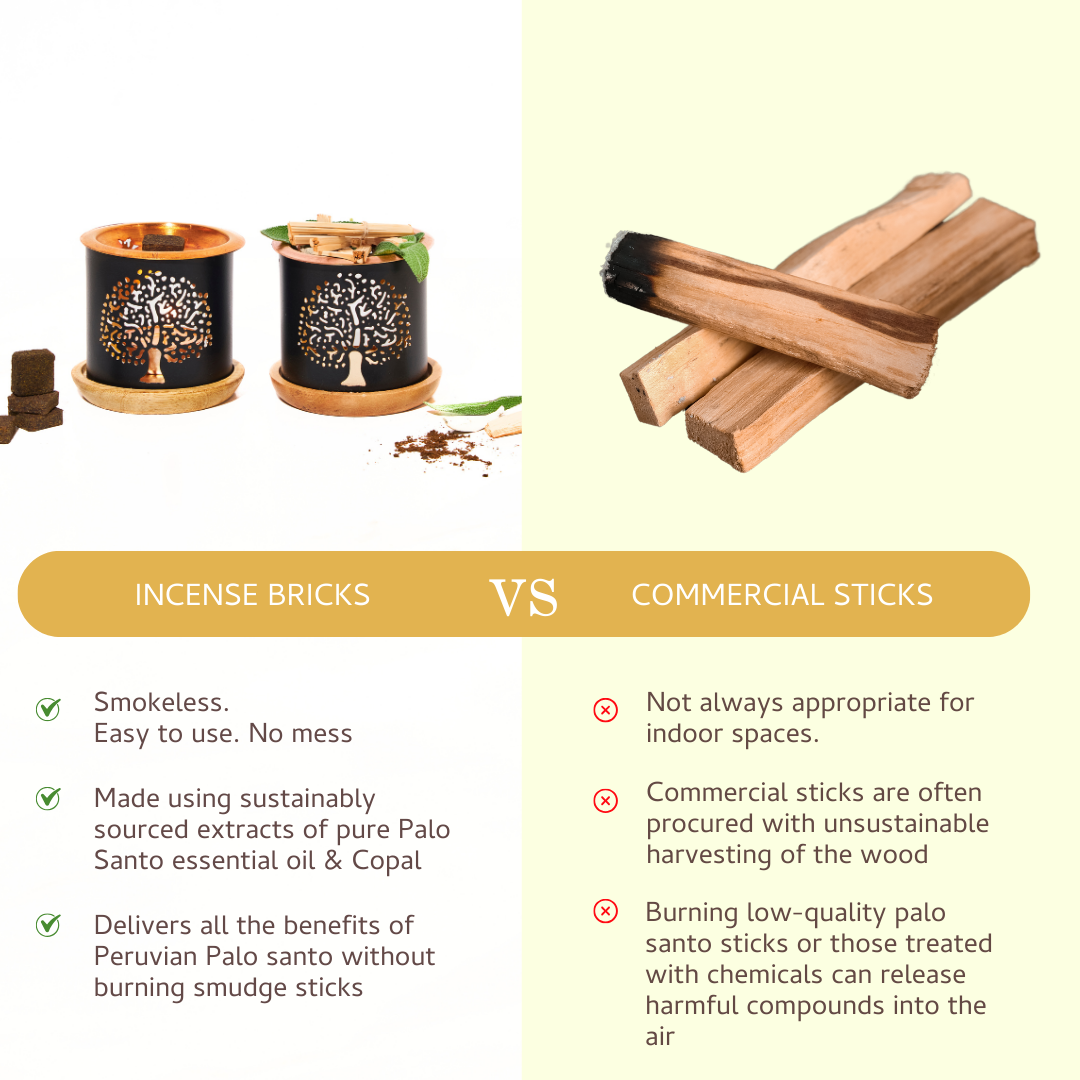 Incense Bricks & Oriental Burner| Woody & Balsamic scent to Clear Energy | Refresh your home and promote upliftment | Natural Home Fragrance| Ethically Sourced Palo Santo extract