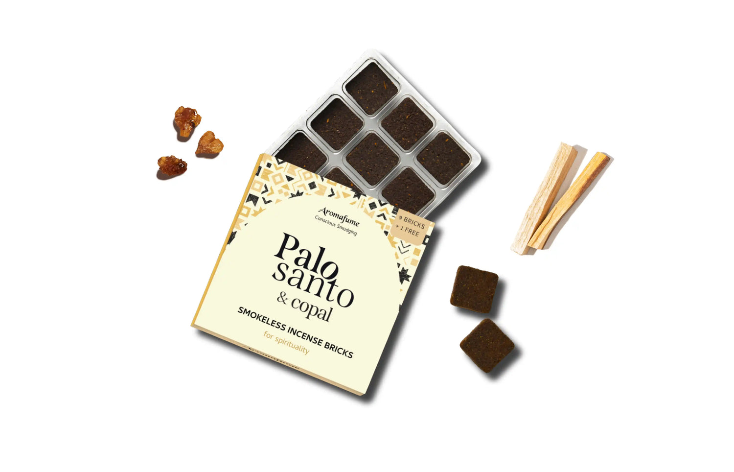 Aromafume's Palo Santo & Copal Incense Bricks offer a smokeless alternative to smudging. Our bricks have been carefully blended to elevate your divine energy and uplift your spirit.