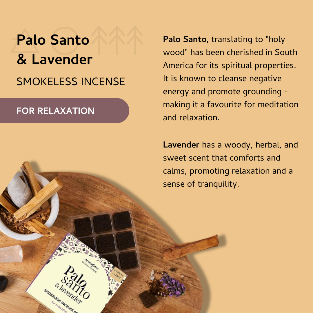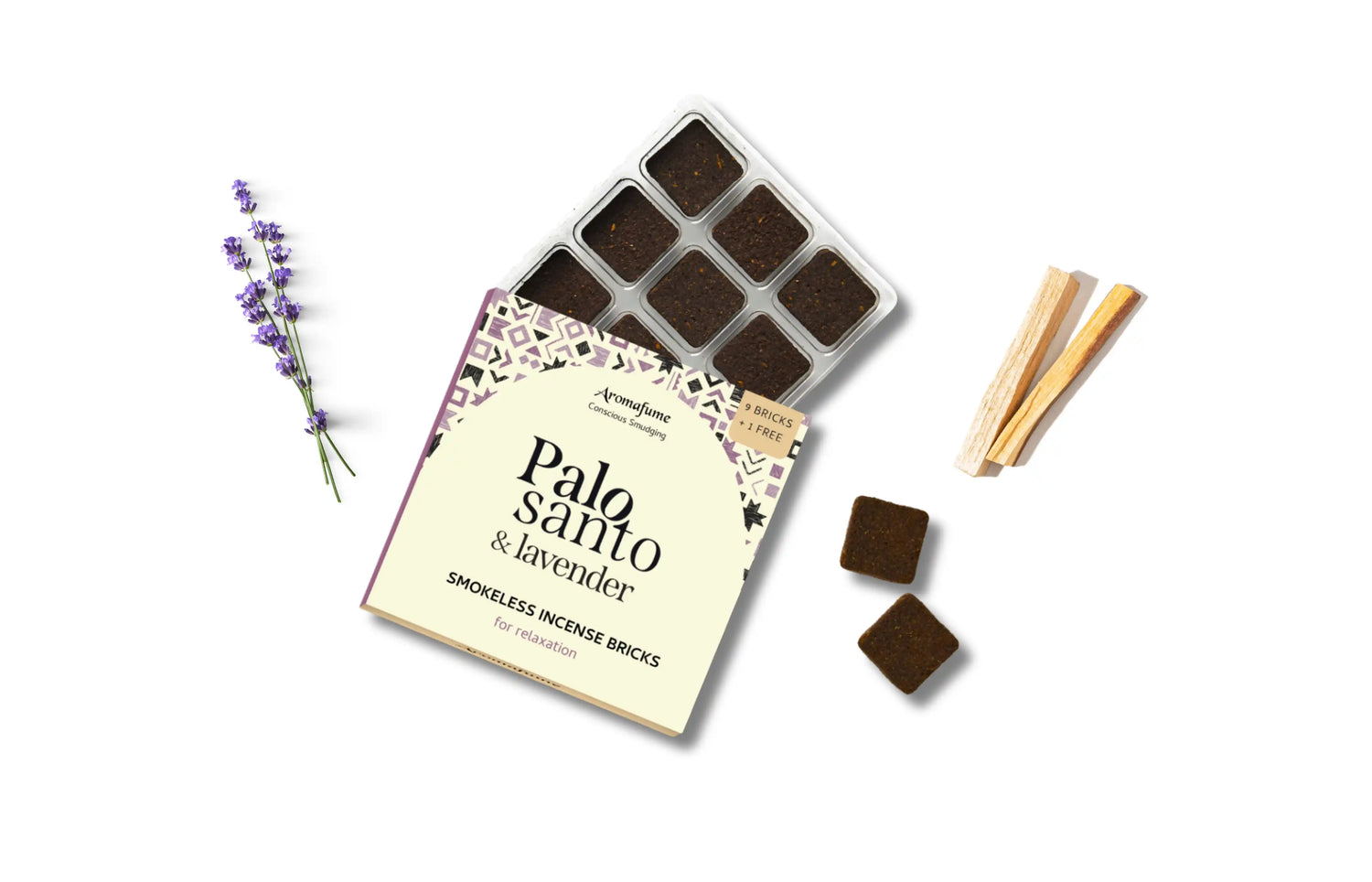 Aromafume's Palo Santo & Lavender Incense Bricks offer a smokeless alternative to smudging. Our bricks have been carefully blended to elevate your divine energy while inviting peace and calm.