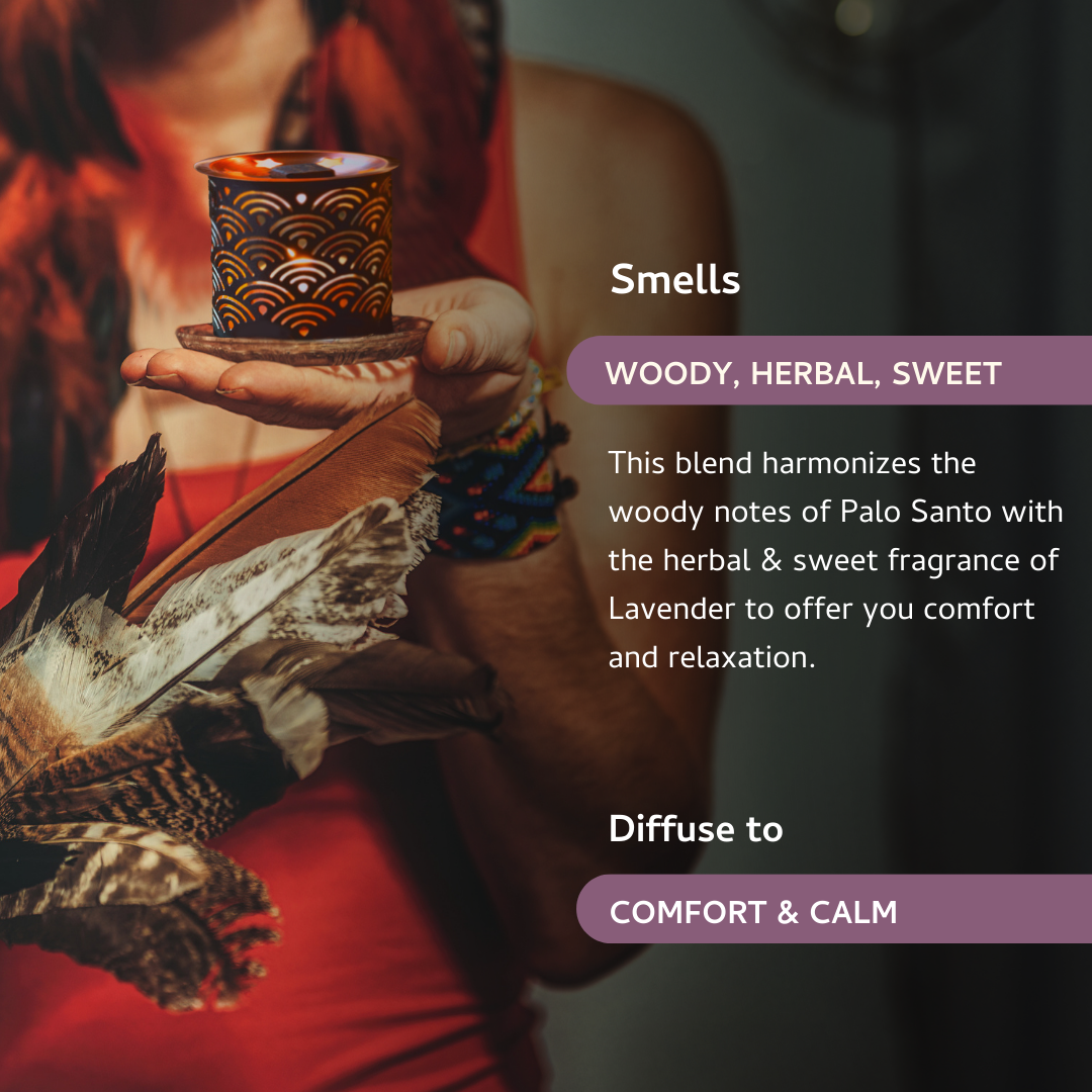 Known as “holy wood” in Spanish, Palo Santo is a tree associated with several medicinal and therapeutic properties - specifically known to induce positivity, grounding and protection. Lavender can help provide a deeper sense of relaxation and also create the optimal environment for restful sleep.