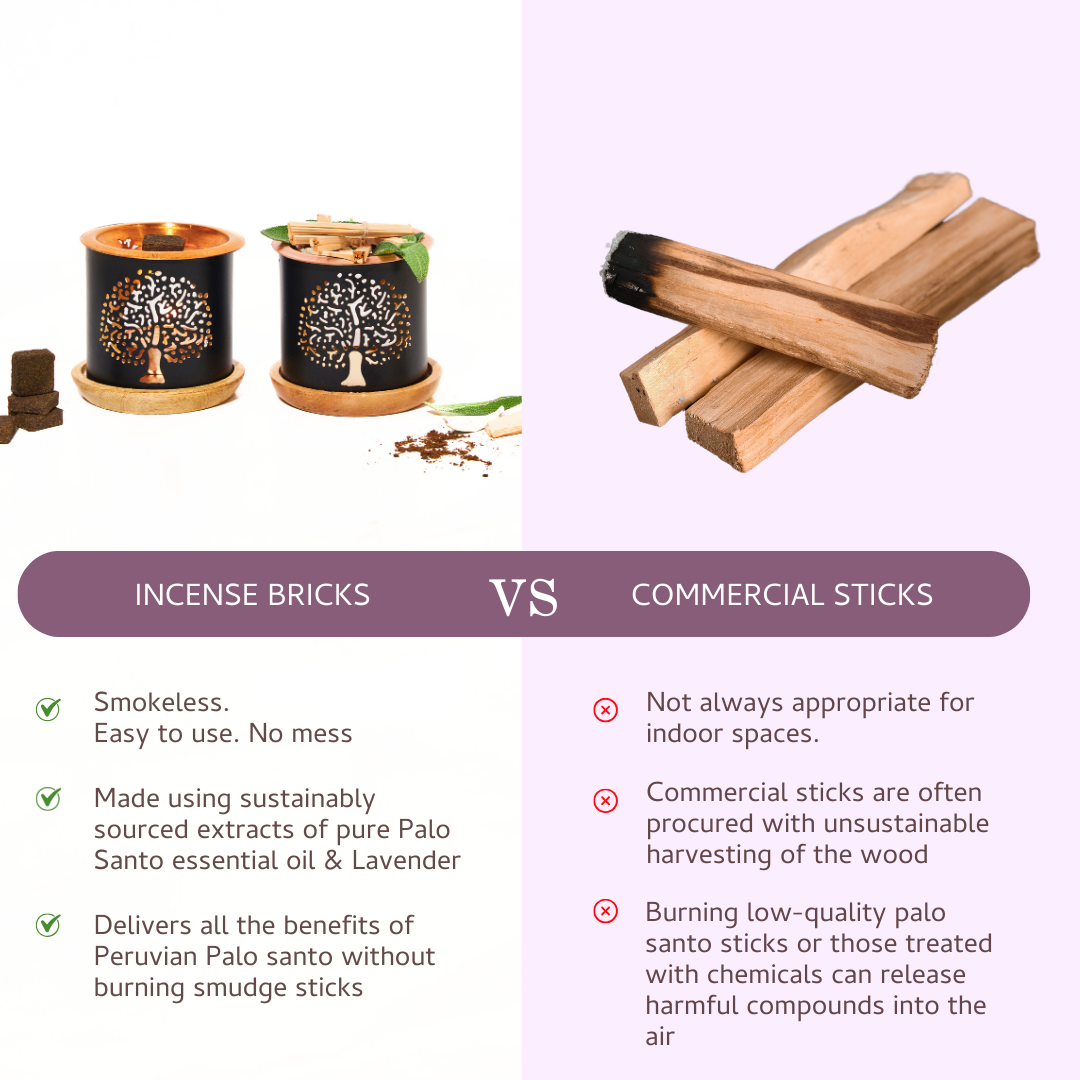 Incense Bricks & Flower of Life Burner| Woody & Herbal scent for Comfort | Refresh your home and induce calmness | Natural Home Fragrance| Ethically Sourced Palo Santo extract