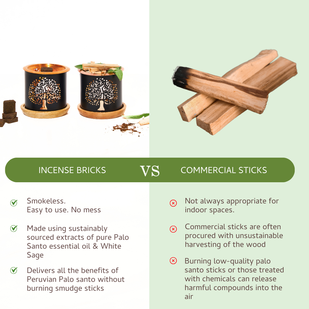 Incense Bricks & Tree of Life Burner| Woody & Fresh scent for Grounding | Refresh your home and induce purification | Natural Home Fragrance| Ethically Sourced Palo Santo extract