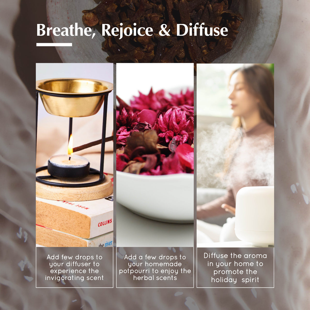 100% Pure Clove Essential Oil | Steam Distilled Syzygium Aromaticum |Natural home fragrance & air freshener | Smells like Mulled Wine or the holidays | Induces mood boost & wellness