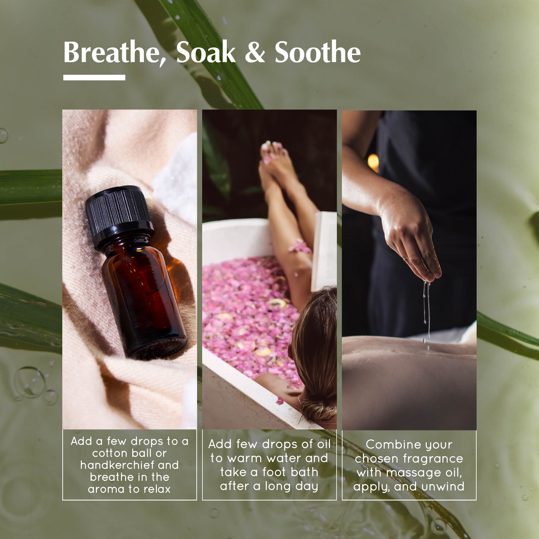 Mix a few drops with a carrier oil and add to your bath, massage routine, or body oil blend. The natural aroma helps relax the body, ease tension, and support emotional balance.