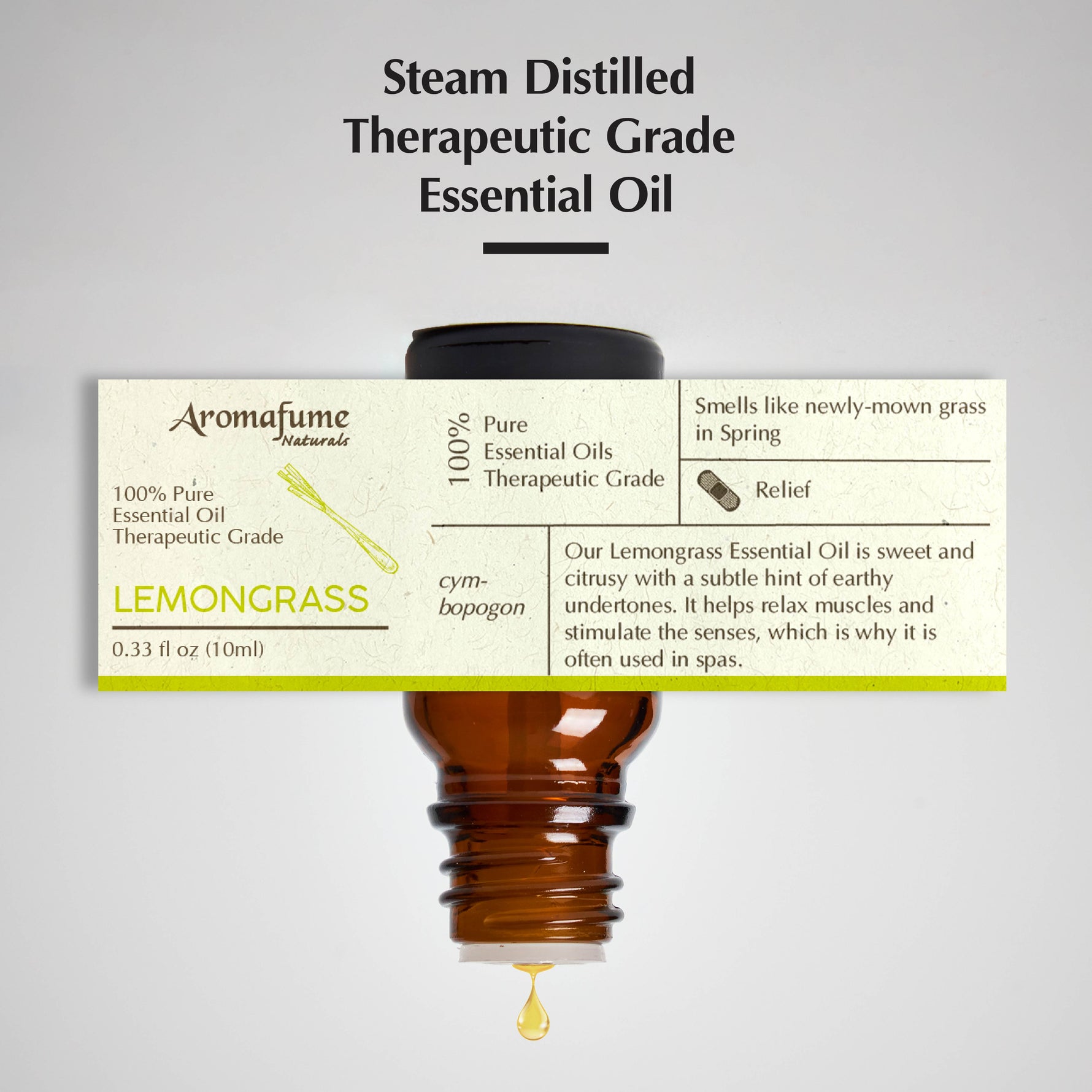 100% Pure Lemongrass Essential Oil | Steam Distilled Cymbopogon Citratus |Natural home fragrance & air freshener | Smells like a newly mown grass in spring | Induces relief