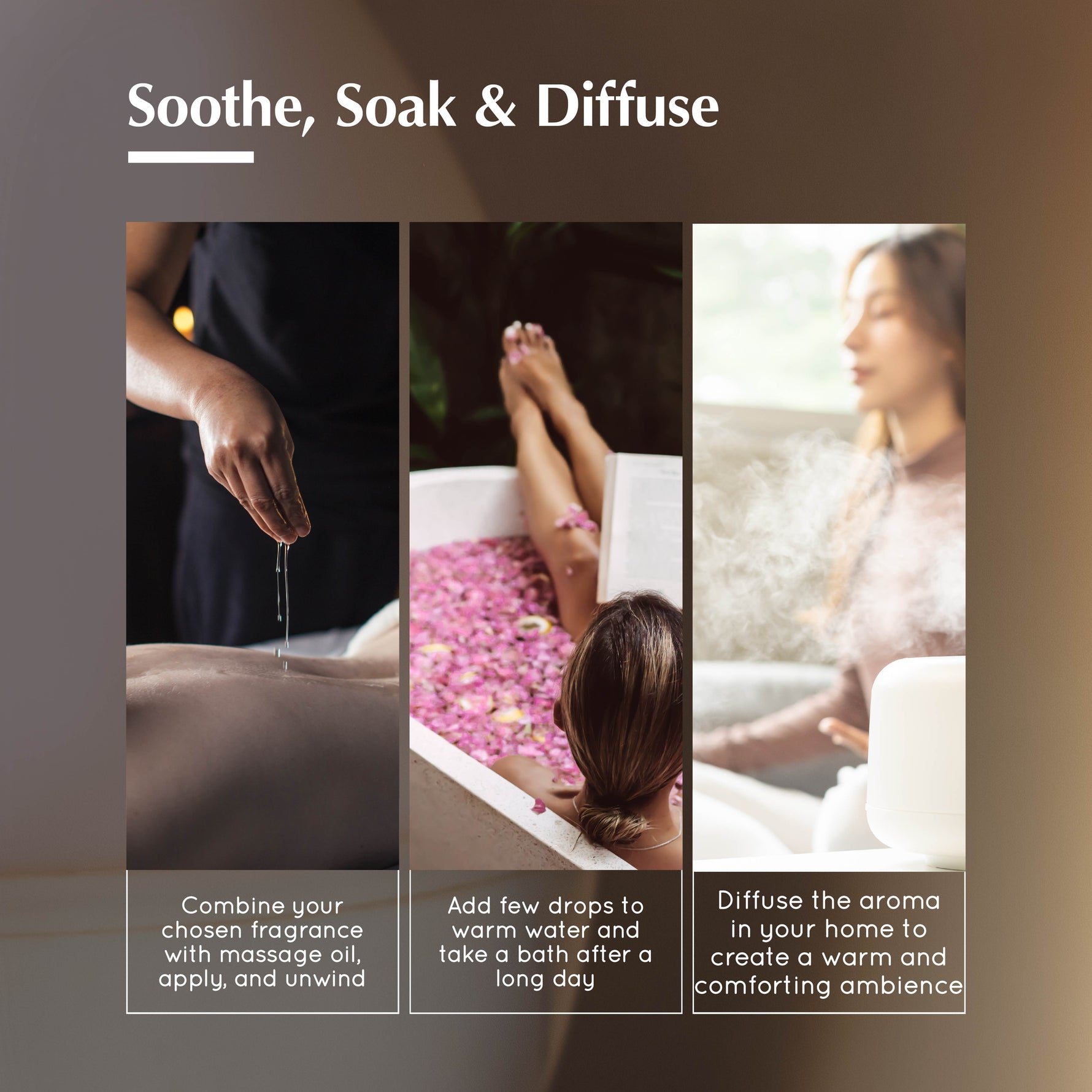 Mix a few drops with a carrier oil and add to your bath, massage routine, or body oil blend. The natural aroma helps relax the body, ease tension, and support emotional balance.