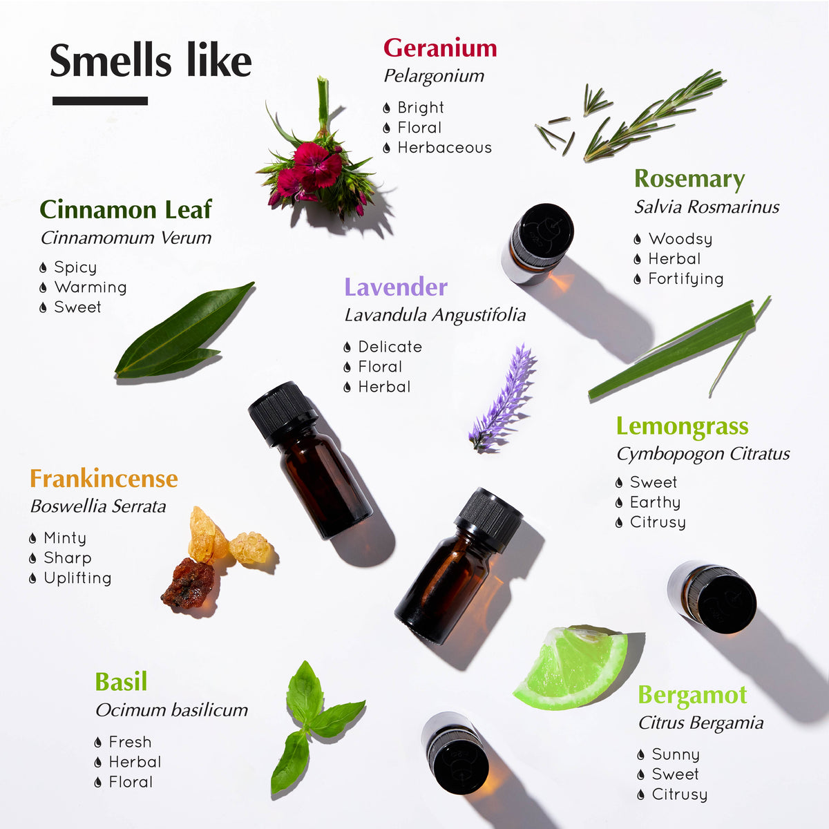 Steam Distilled Citrus Bergamia, Steam Distilled Boswellia Serrata, Steam Distilled Pelargonium, Steam Distilled Ocimum Basilicum, Steam Distilled Boswellia Serrata, Steam Distilled Cinnamomum Verum, Steam Distilled Lavendula Angustifolia, Steam Distilled Salvia Rosmarinus