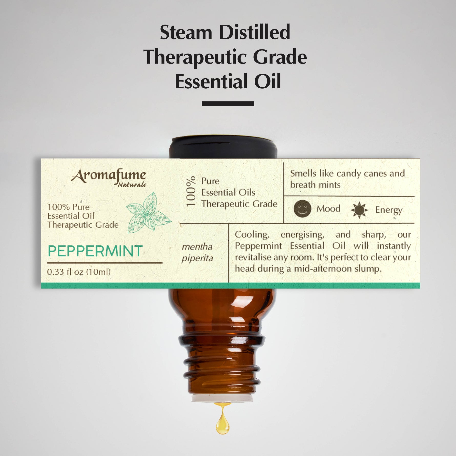 Aromafume’s therapeutic-grade peppermint essential oil is 100% pure & natural. We combine traditional extraction methods with modern science to deliver a pristine oil that stands out for its safety and effectiveness. Our peppermint oil is steam-distilled from fresh peppermint leaves, ensuring the purest essence is captured. Known for its invigorating and refreshing properties, peppermint helps to uplift the senses and create a revitalizing atmosphere.