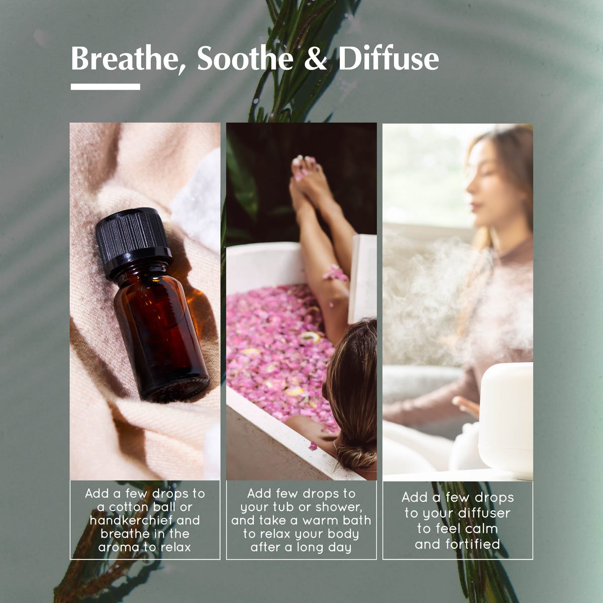 Mix a few drops with a carrier oil and add to your bath, massage routine, or body oil blend. The natural aroma helps relax the body, ease tension, and support emotional balance.