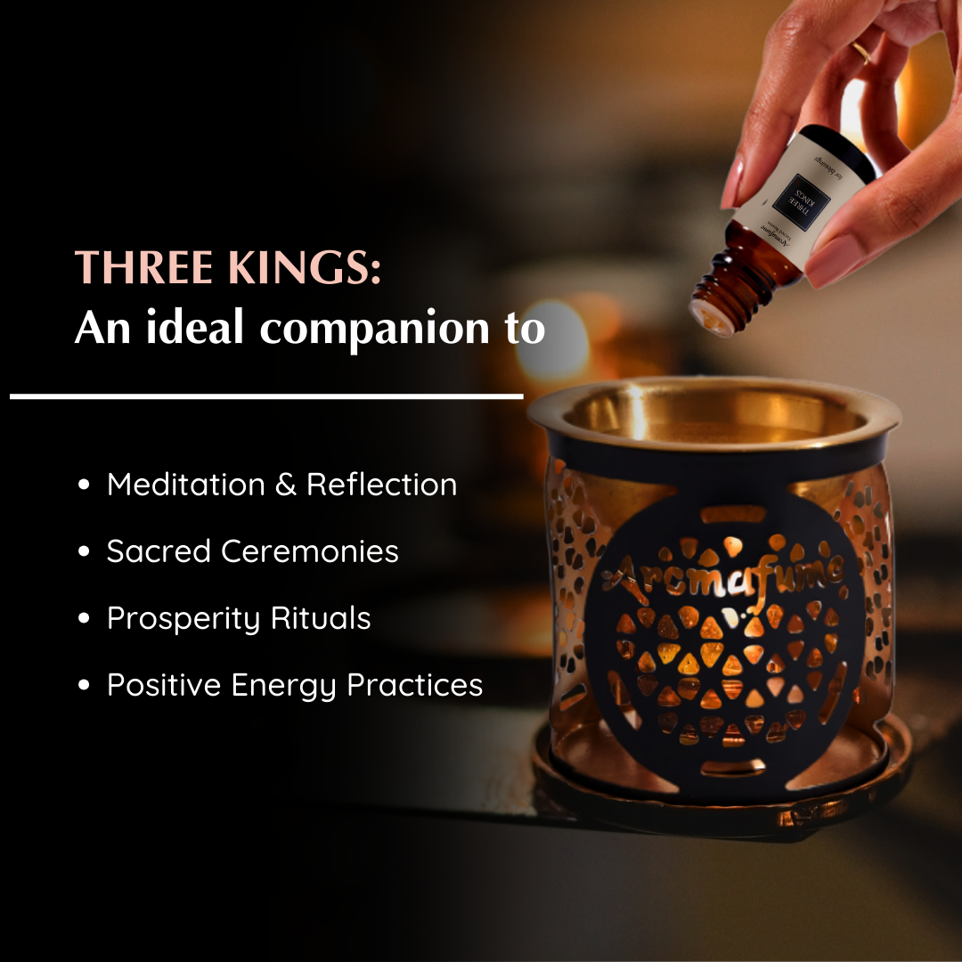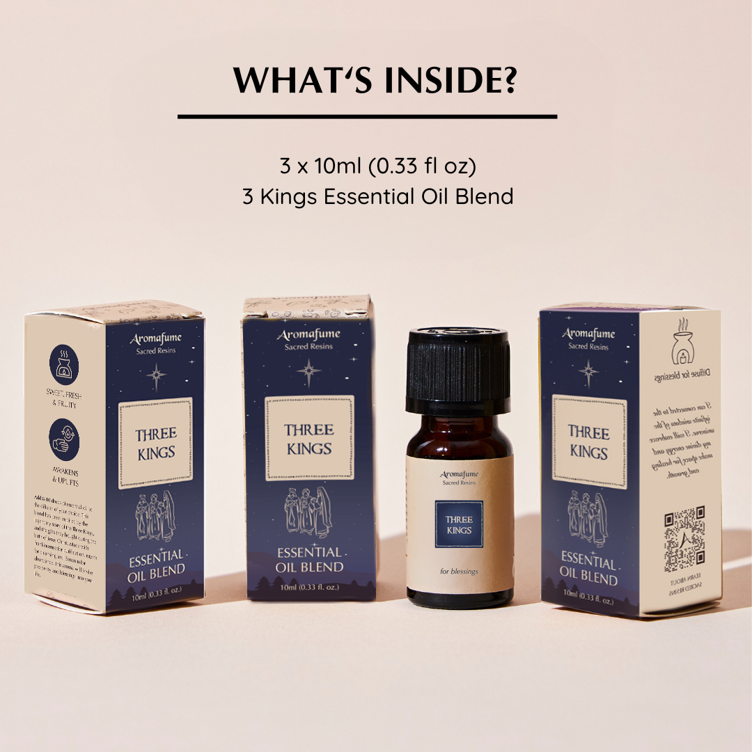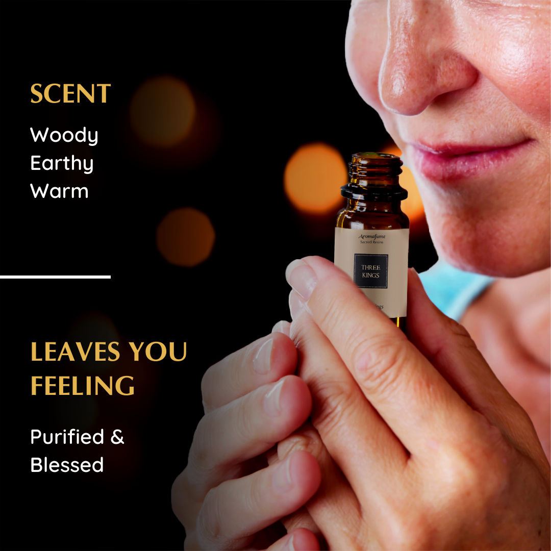The Three Kings, or Wise Men, are significant figures in the story of the birth of Jesus Christ, known for bringing symbolic gifts of Frankincense, Myrrh, and Gold. Drawing inspiration from this historic tale, our mist blends sacred resins: Frankincense for its purifying qualities, Myrrh for its cleansing aroma, and Benzoin for its warm, rich scent, symbolizing abundance.