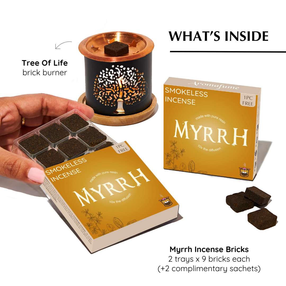 Incense Bricks & Tree of Life Burner | Woody & Warm scent to induce clarity| Made with natural resin extracts from sacred Myrrh trees | Refresh your space to welcome positivity | Natural Home Fragrance