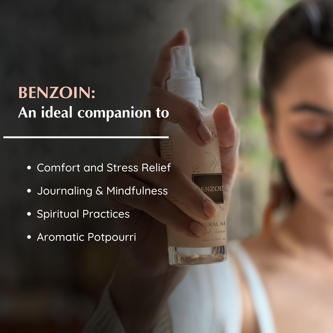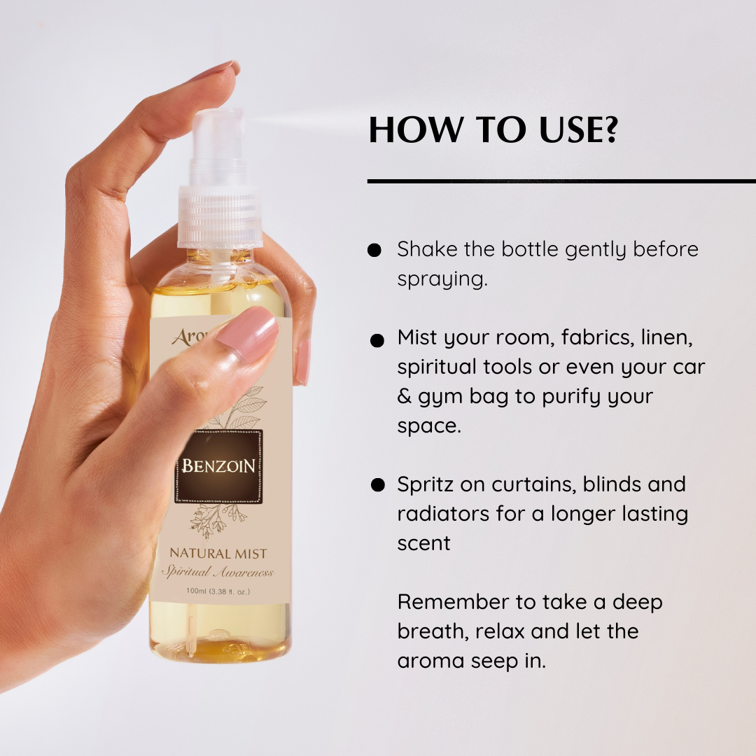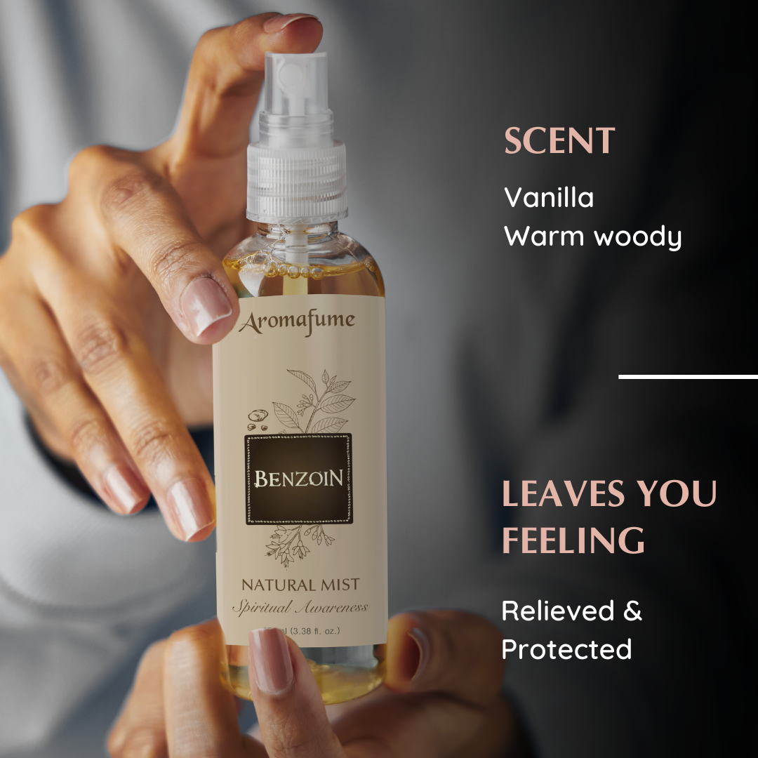 Benzoin Natural Mist | Vanilla & Warm Woody scent to induce purification & prosperity | Made with natural resin extracts from sacred Benzoin trees