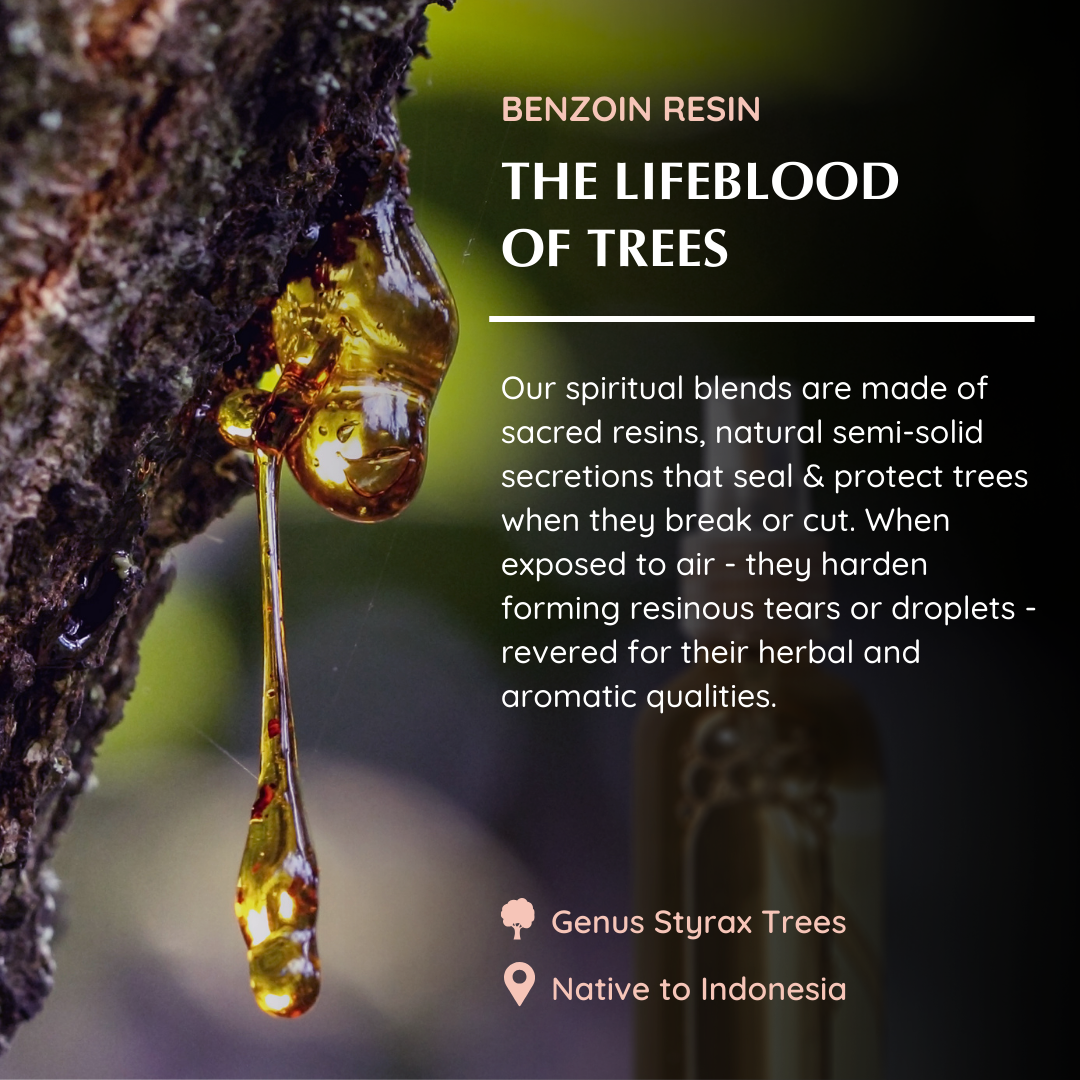 Scent profile: Made with natural resin extracts from sacred Benzoin trees.