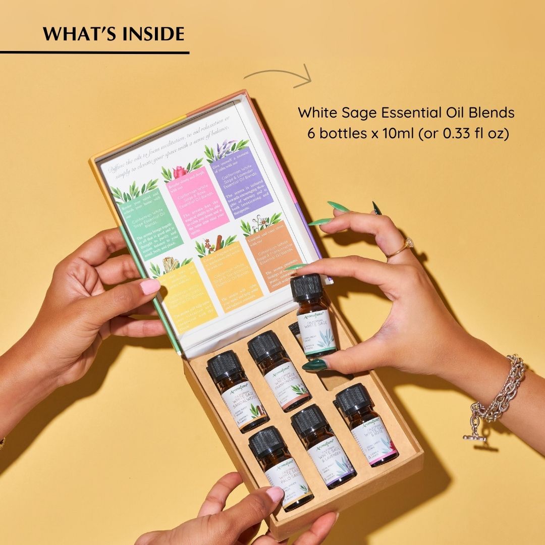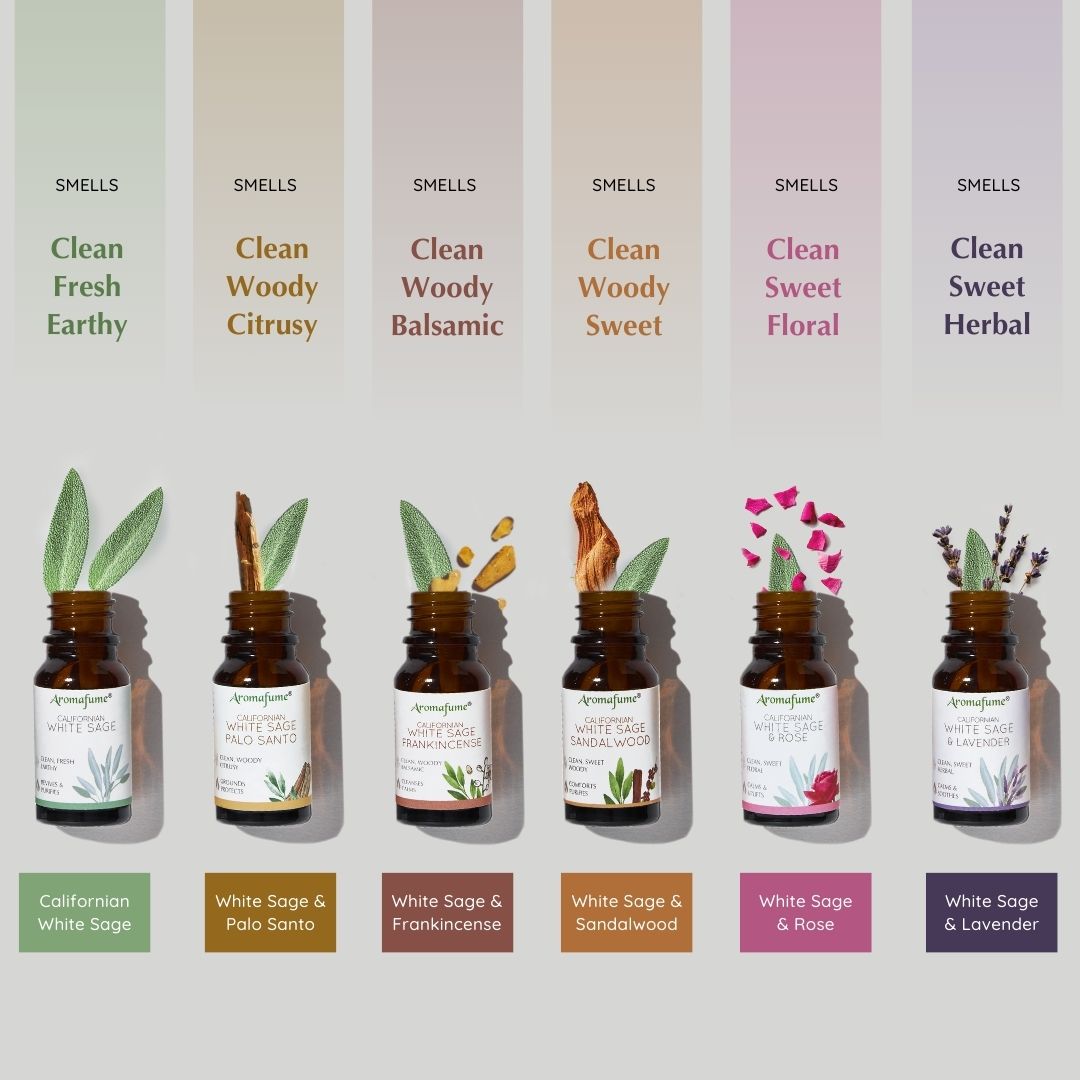 Essential Oil Blends | Assortment scents with White Sage combined with Palo Santo, Rose, Frankincense, Sandalwood & Lavender |Natural home fragrance & air freshener |Made with Ethically sourced White Sage