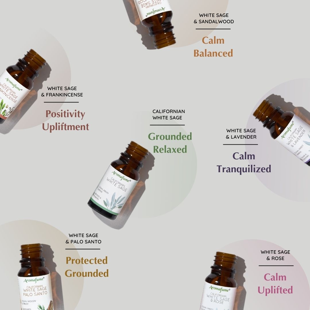 White sage, also known as sacred sage, is an evergreen shrub widely known for its herbal and healing properties. It is traditionally combined with a range of herbs, woods, and plants for various purposes. Aromafume's White Sage Essential Oil Diffuser Blends are blended using sustainably sourced natural ingredients which harness the powers of natural materials without depleting the environment.