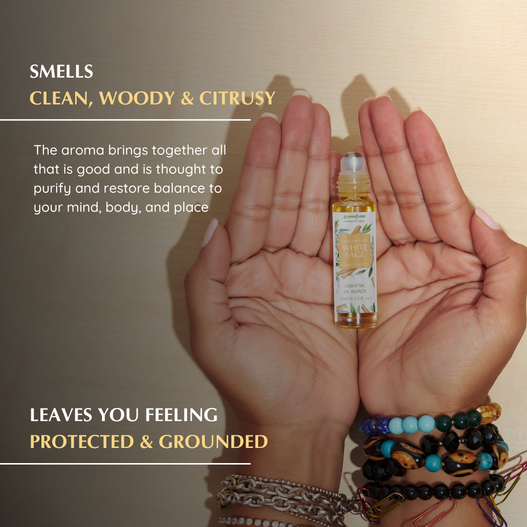 Aromatherapy Roll On | Made with Essential Oils | Minty & earthy scent to induce inner peace | Apply during the day to clear energy | Ethically sourced White Sage