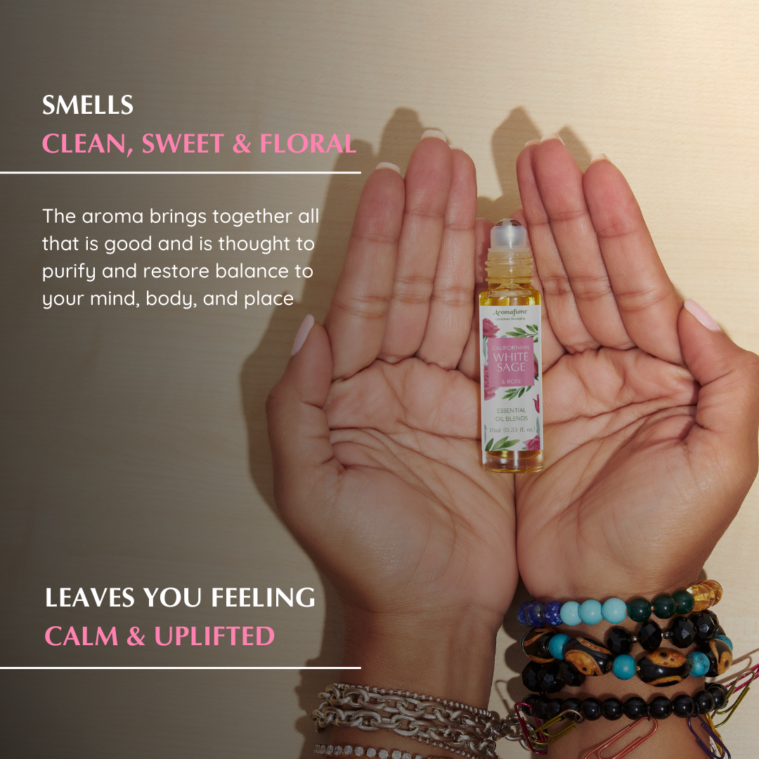 Aromatherapy Roll On | Made with Essential Oils | Sweet & floral scent to induce intimacy| Apply during the day to feel relaxed | Ethically sourced White Sage