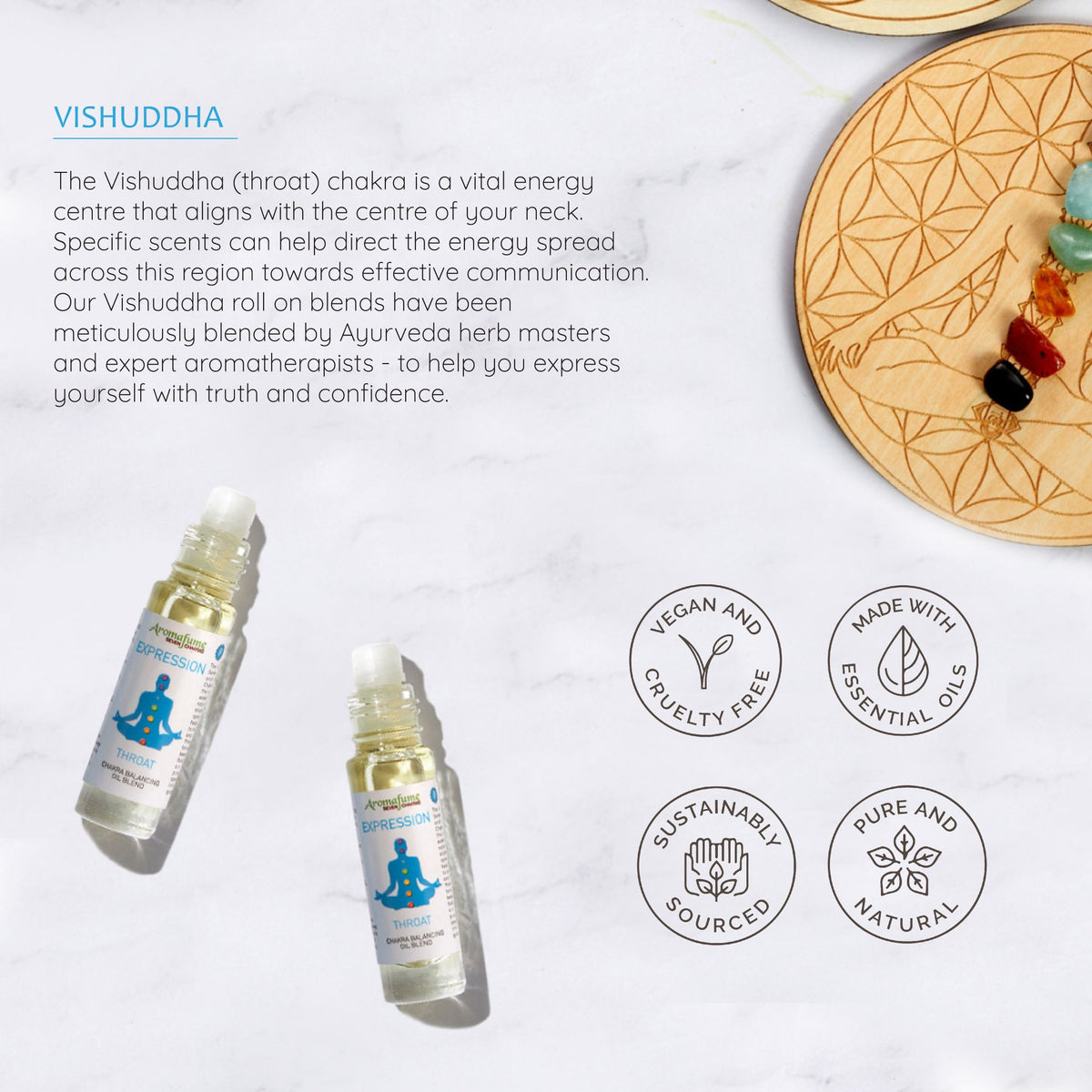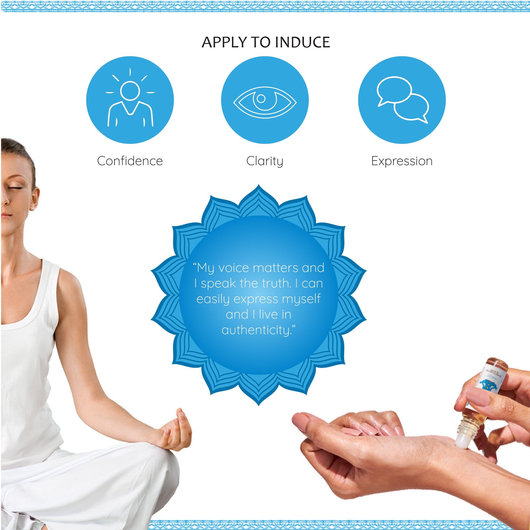 The Vishuddha (Throat Chakra) Roll-on, expertly crafted by a Chakra Alignment Herb Master, offer a finely balanced fragrance from pure aromatic extracts. Aligned with the throat, the Vishuddha Chakra relates to effective communication. Inhaling the fragrance can help overcome difficulties in speaking the truth or expressing oneself, enabling improved communication without the fear of judgement. It supports more honest and confident communication.