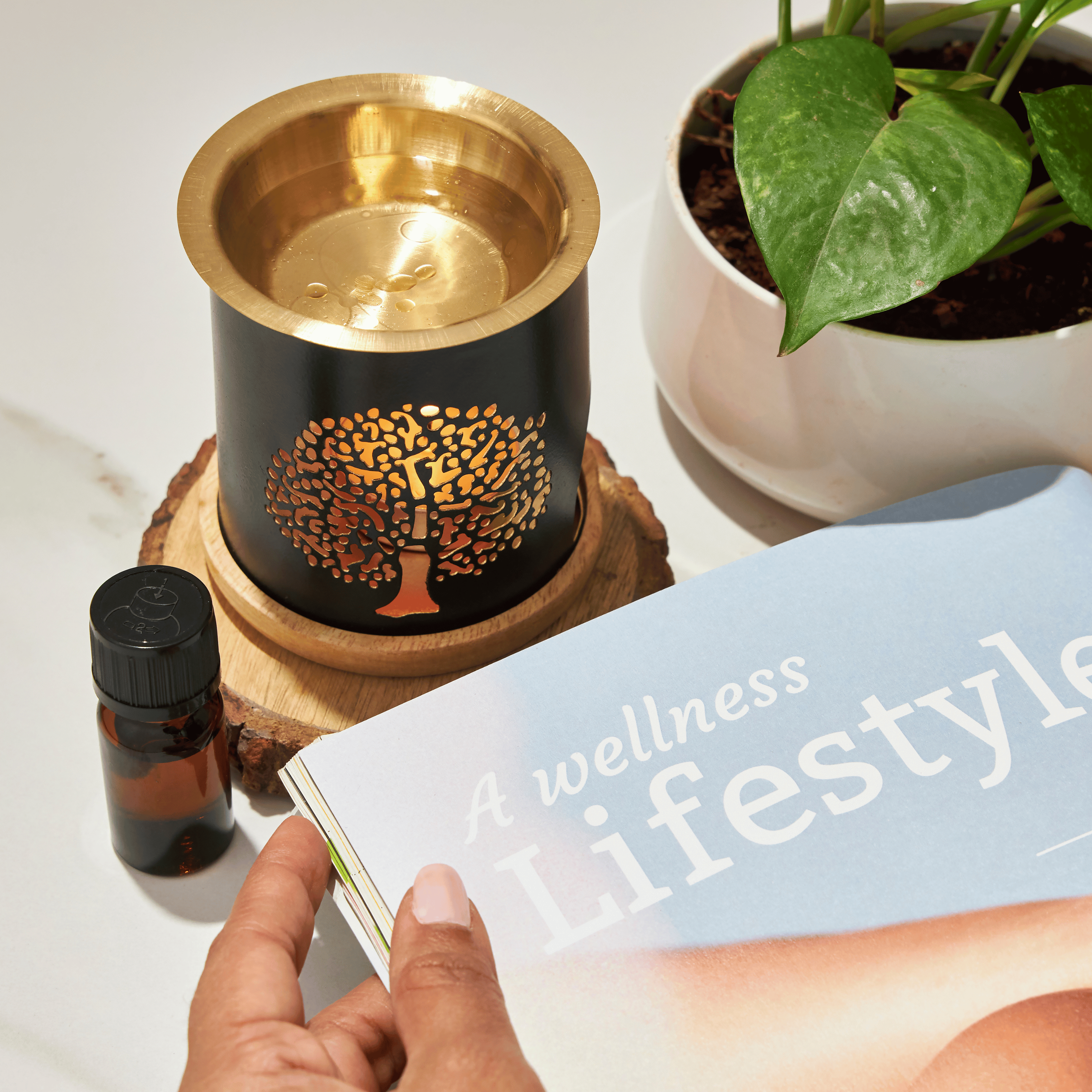 Use an electric diffuser for larger spaces and a candle diffuser for smaller rooms or enclosed areas. Always add water before the oil to ensure safe, even diffusion.