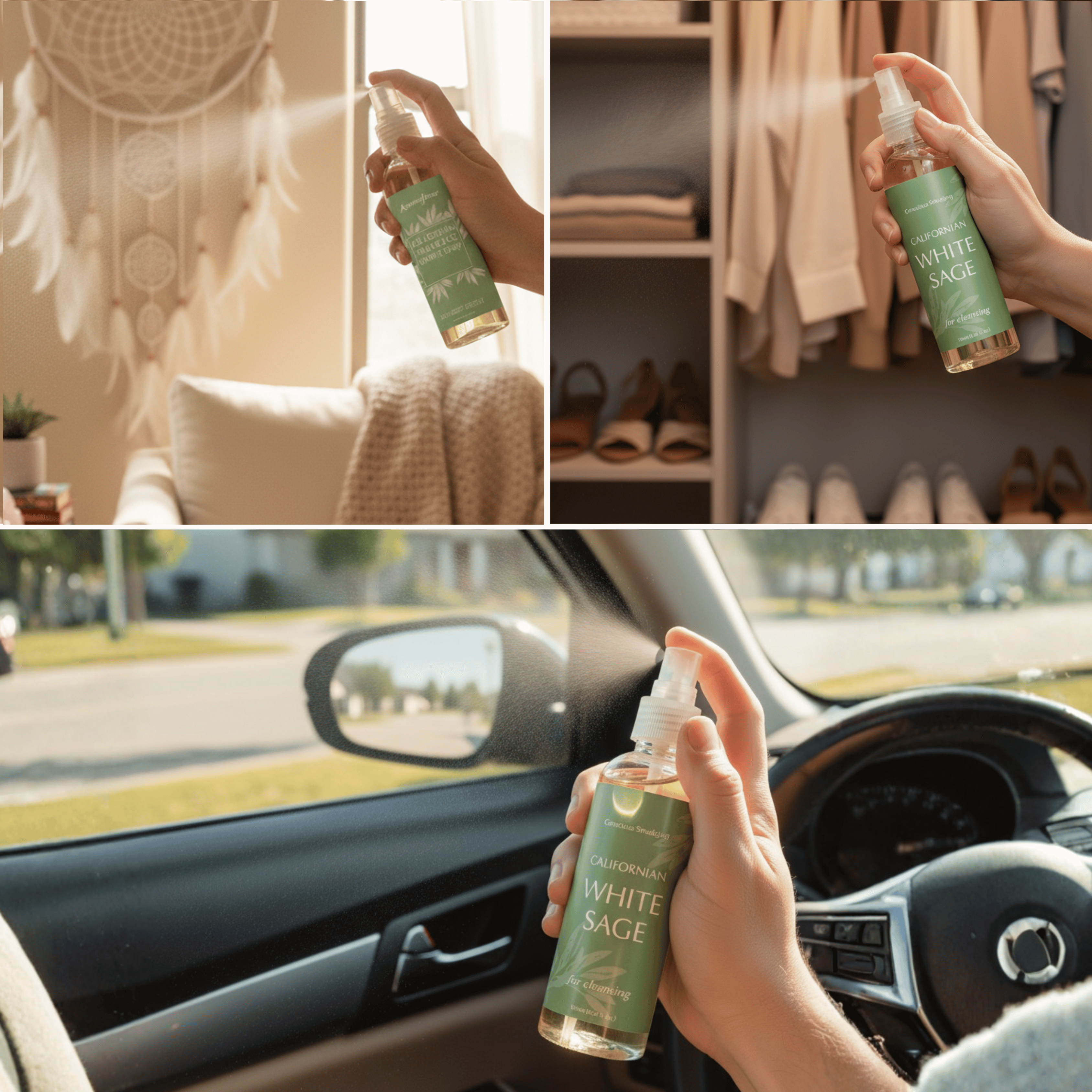 Crafted with consciously sourced Californian White Sage and pure essential oils to deliver the authentic aroma of traditional smudging — ethically, sustainably, and with care.